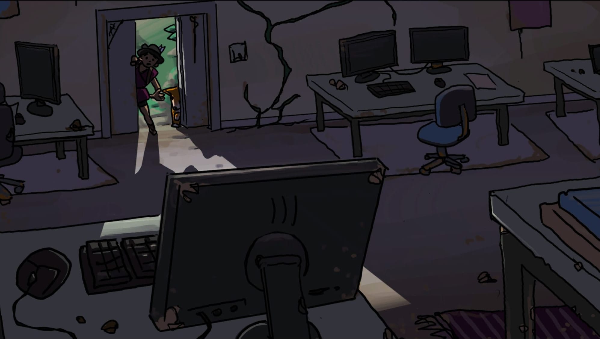 One morning, while wandering through the remains of the city with her dog, Beegee, Nara stumbles upon the wreckage of what was once an office. Beneath the rubble, she finds a laptop — dusty, but not dead. It flickers. It waits.